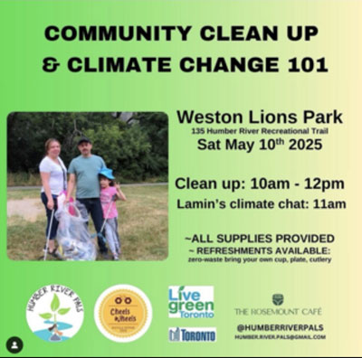 Because of Mother's Day, the environmental cleanup took place on Saturday, May 10 from 10 am – 12 pm. 10. Members of Toronto Bell Cote were delighted to join the cleanup at Weston Lions Park, organized by Humber River Pals, sharing our common desire to beautify the grounds near the Humber River. Thanks to Lamin and his climate chat, we strengthened community bonds and learned more about global warming.